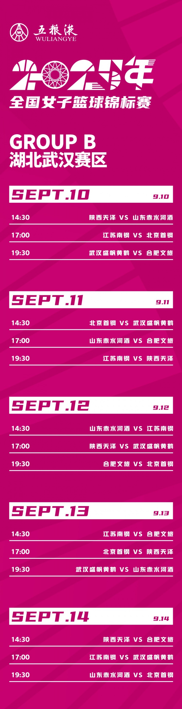 湖北武汉赛区——B组:9月10日至9月14日