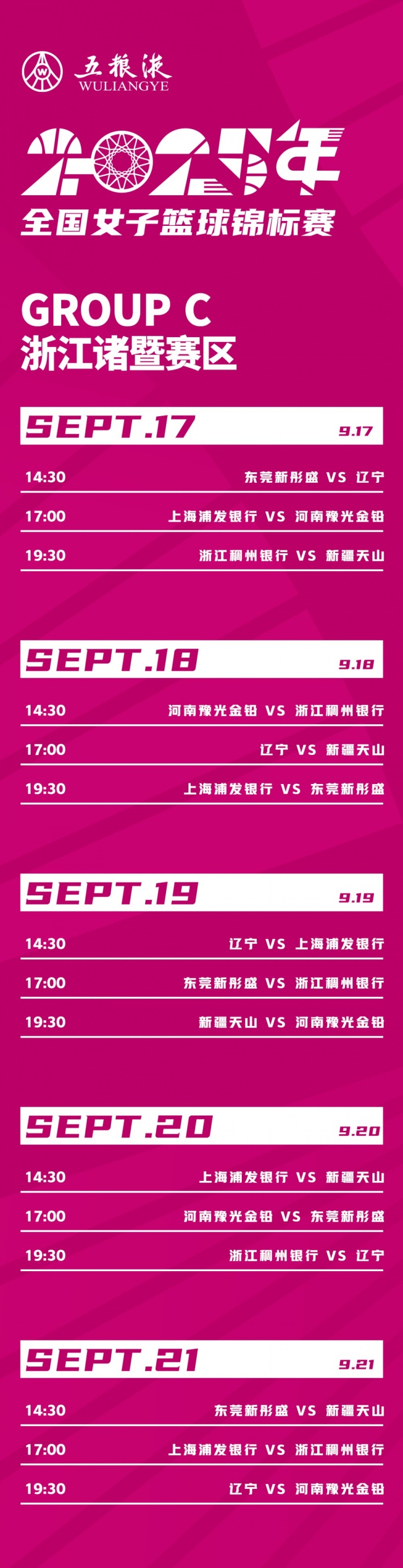 浙江诸暨赛区——C组:9月17日至9月21日