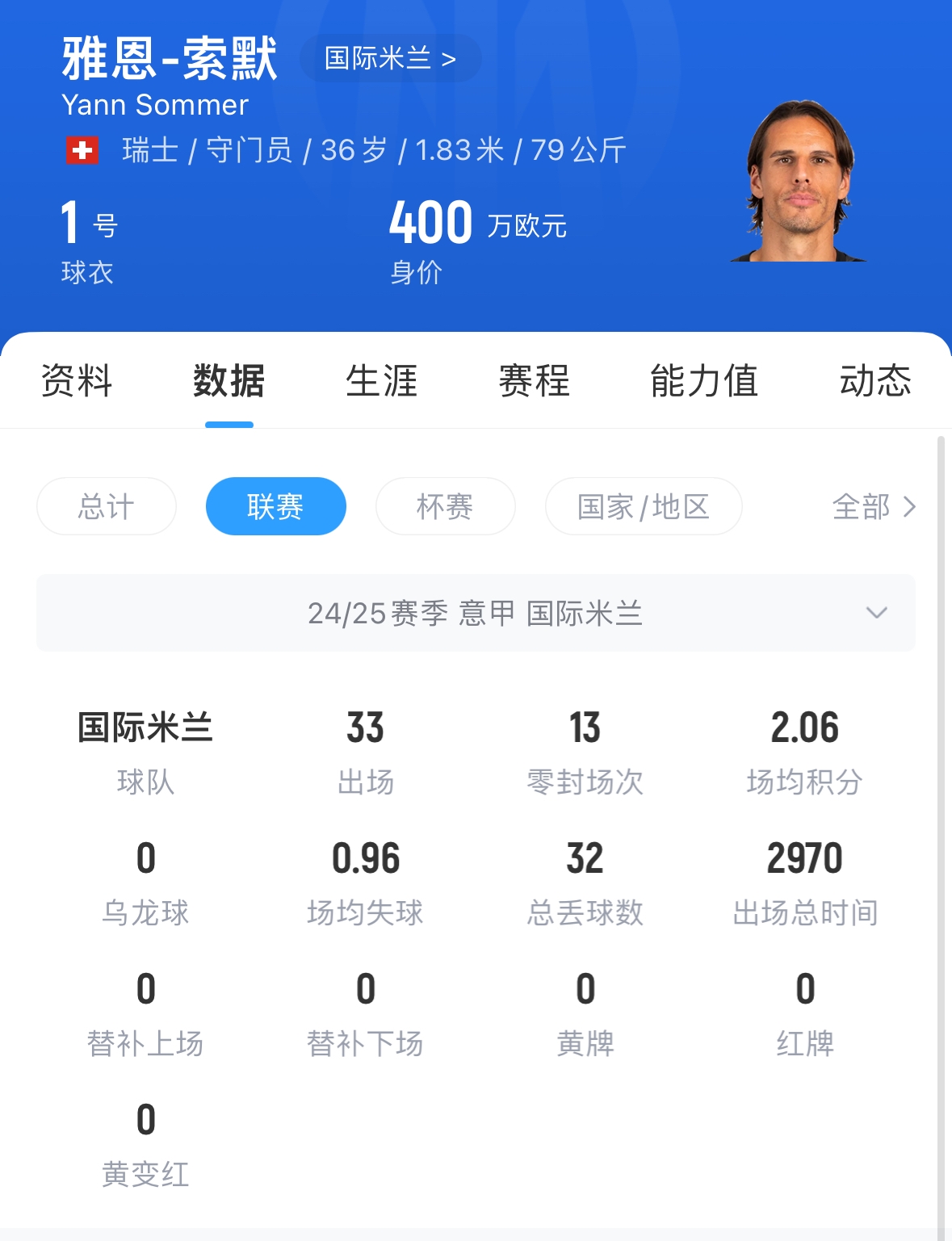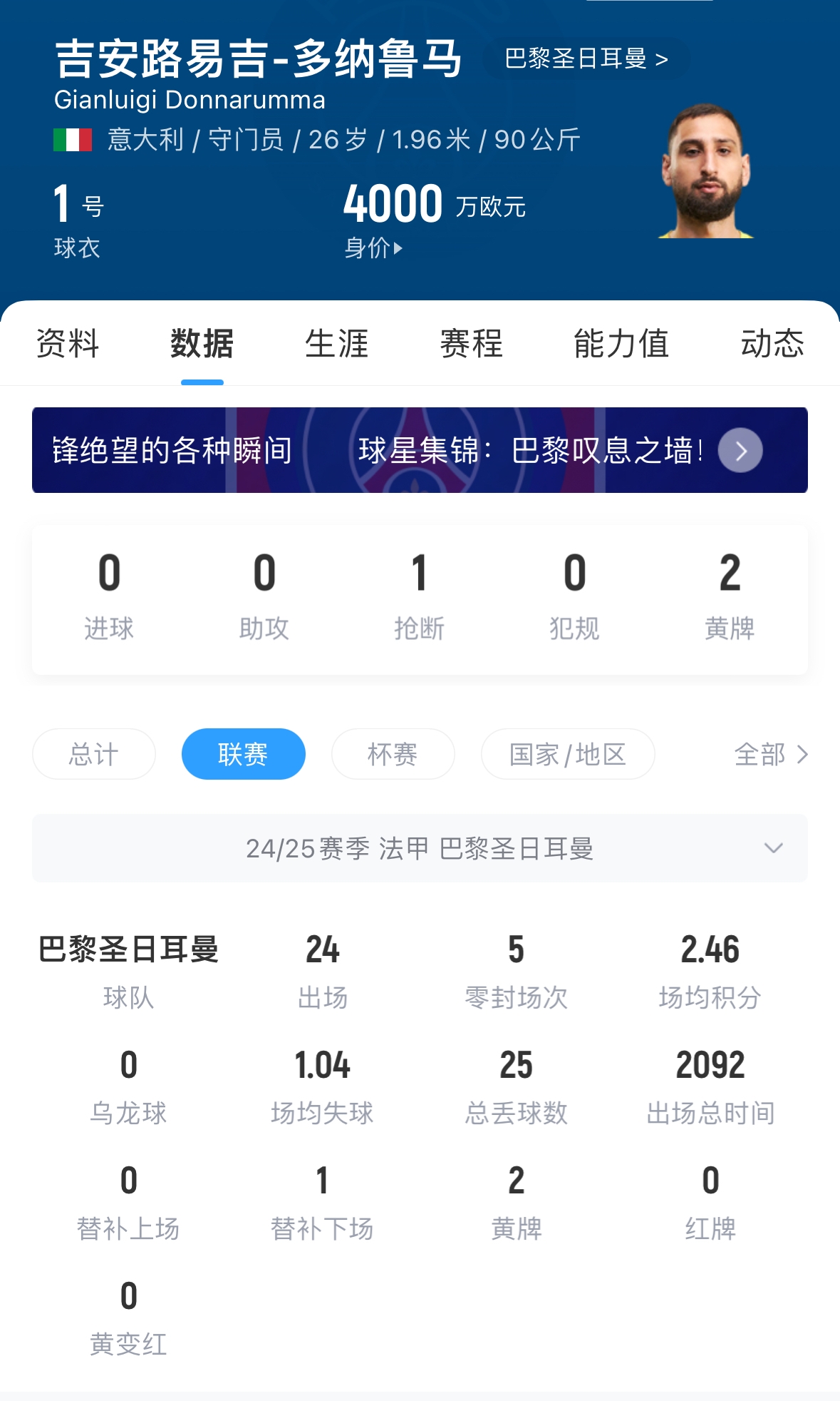 索默现年36岁,他于2023年从拜仁转会至国米,现身价400万欧。多纳鲁马现年26岁,他与巴黎的合同将在2026年到期,目前德转身价4000万欧。